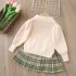 • Set de 2 piese din cardigan cu broșă cusută și fustă plisată cu model în carouri Miss Teddy Scholar
