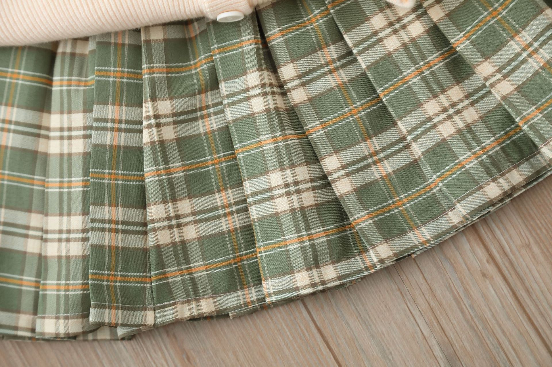 – Fustă plisată în carouri, realizată din material de înaltă calitate și ușor, în tonuri armonioase de verde și bej. Modelul are talie elastică confortabilă, structură fin plisată și o croială clasică ce completează frumos partea superioară, creând un stil complet și echilibrat.