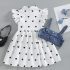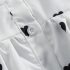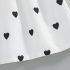 – Rochie cu mânecă scurtă, realizată dintr-un material ușor și plăcut la atingere, de culoare albă, decorată cu mici inimioare negre. Modelul are guler clasic și închidere completă în față cu nasturi. Mânecuțele sunt prevăzute cu volănașe delicate, care adaugă finețe și volum. Partea de jos este evazată, cu o ușoară încrețitură în talie, oferind lejeritate și confort la mișcare.