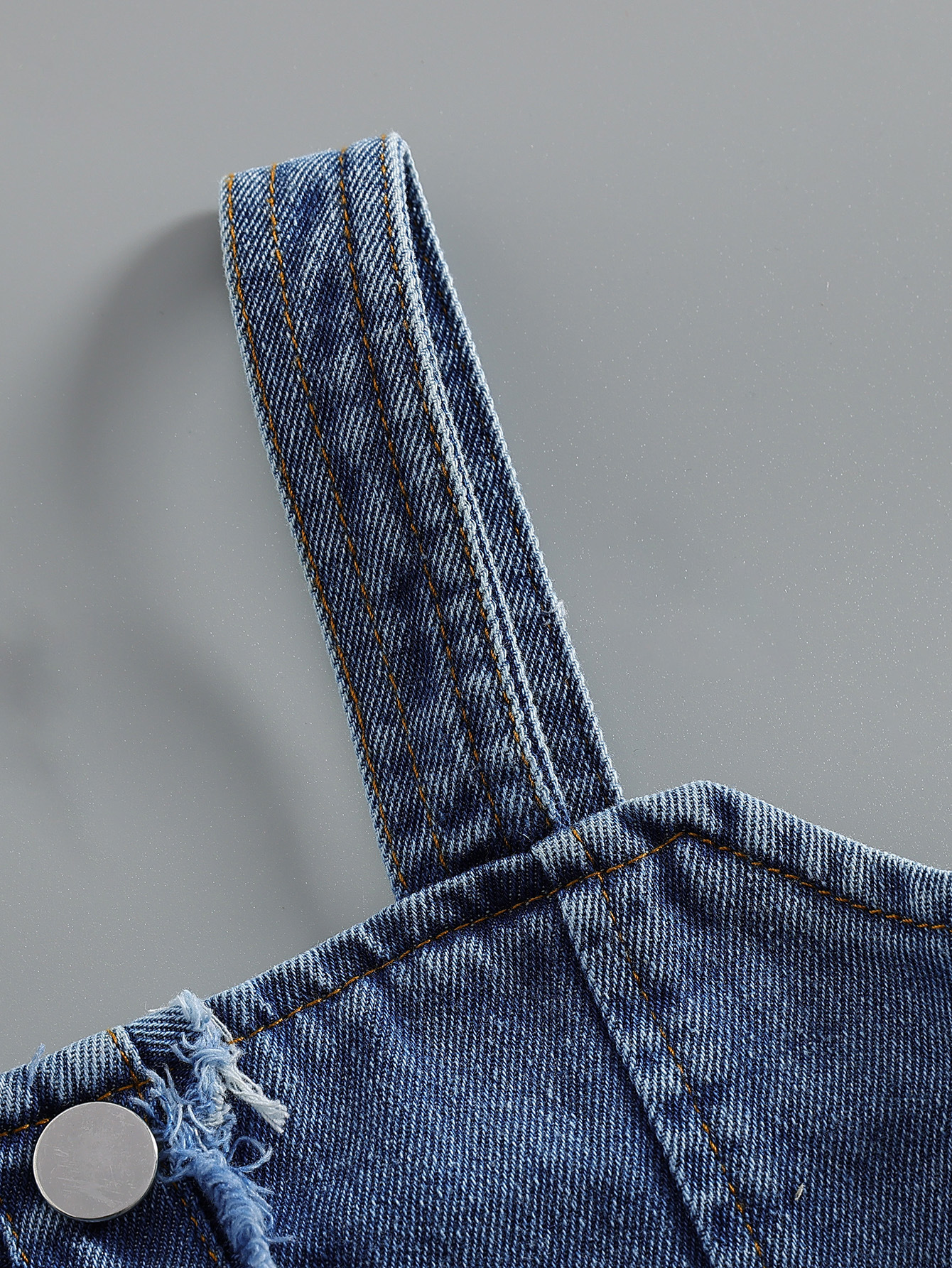 – Top din denim tip bustieră, care se poartă peste rochie – confecționat din denim moale cu efect ușor decolorat pentru un finisaj modern. Modelul are bretele late și nasturi decorativi în față, accentuează talia și adaugă un efect stratificat elegant look-ului.