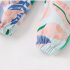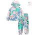 -Hanorac cu glugă din bumbac respirabil, acoperit integral cu un imprimeu tropical pictural în nuanțe de verde, albastru și piersică. Model cu glugă căptușită cu material mentă moale, fermoar pe toată lungimea pentru îmbrăcare rapidă și două buzunare.