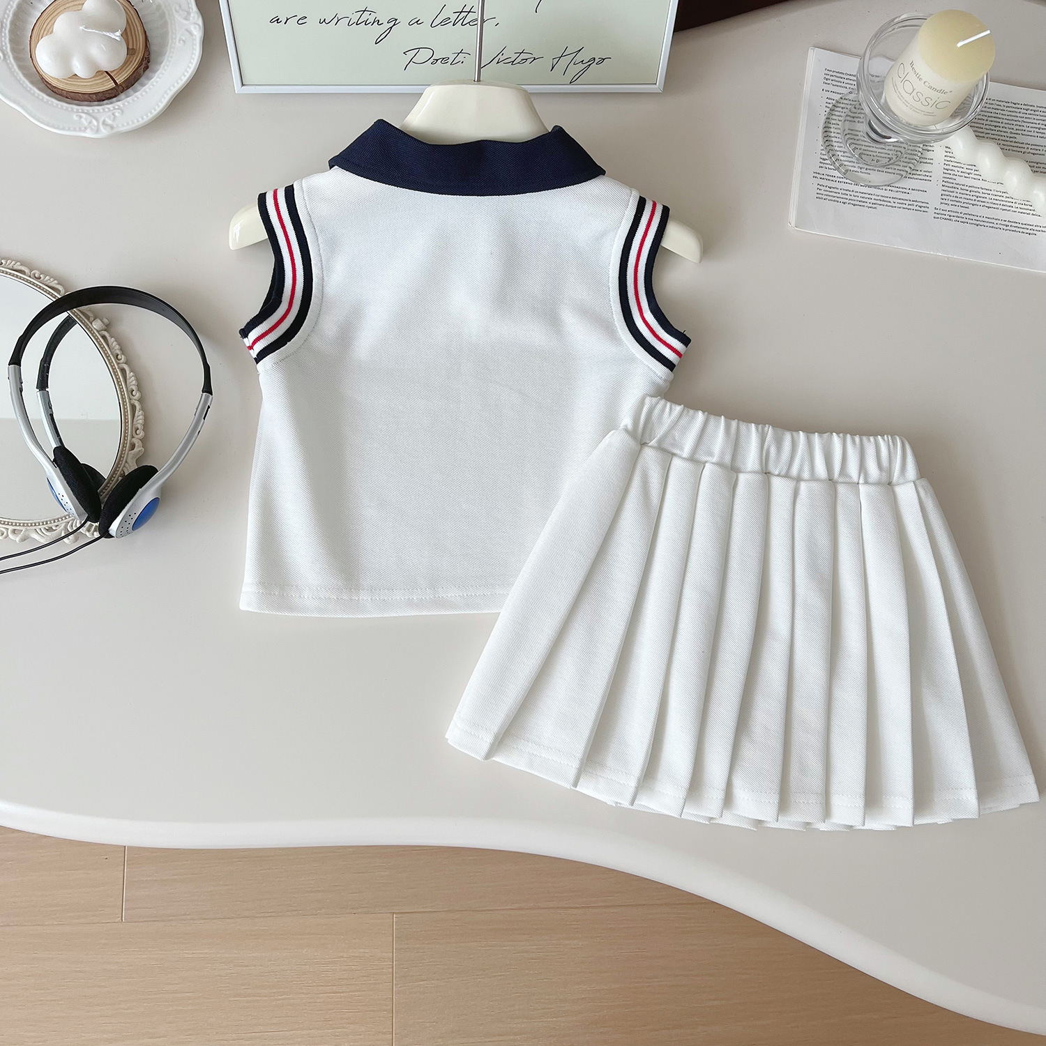 🤍 Set elegant și rafinat din 2 piese pentru fetiță – modern, sport-elegant și creat pentru micile domnișoare cu simț al detaliului. Inspirat de stilul tenis – linii curate, culori clasice și un aer premium.