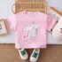 -Tricou într-o nuanță roz bombon, cu fundiță 3D, confecționat din bumbac moale și ușor, care mângâie pielea copilului și oferă confort ideal în zilele însorite. Aplicația centrală reprezintă o rățușcă albă zâmbitoare, cu aripi desfăcute, completată de o fundă lungă din dantelă fină, cusută ca parte a cozii – creează senzația de mișcare și lejeritate. Inscripția „Happy duck” accentuează aerul vesel al designului.