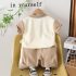 • Set de 2 piese din tricou cu guler clasic, element 3D și pantaloni Roaah Dinos Beige
