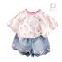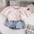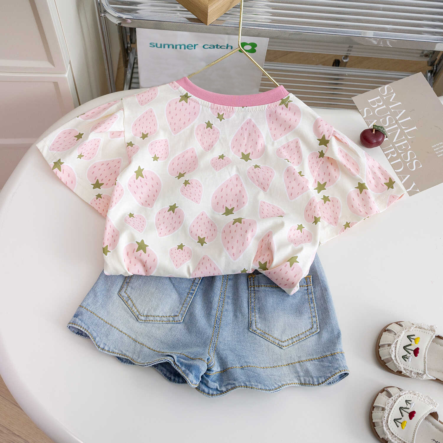 Set de 2 piese din tricou cu imprimeu cu căpșuni și pantaloni din denim cu inimioare 3D Love Strawberries