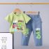 • Set de 2 piese din tricou cu imprimeu și pantaloni lungi din denim Hey Dino