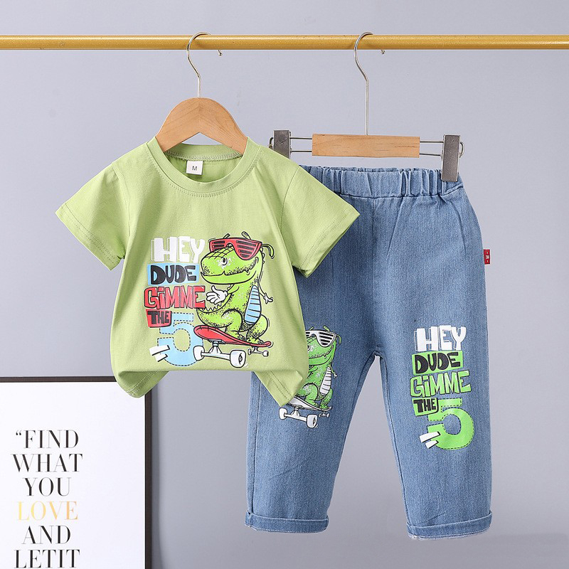 🦖 Set proaspăt și super amuzant din 2 piese pentru băiat – confortabil, colorat și plin de voie bună pentru joacă și aventuri.