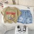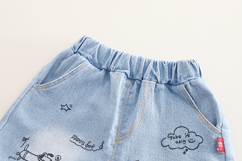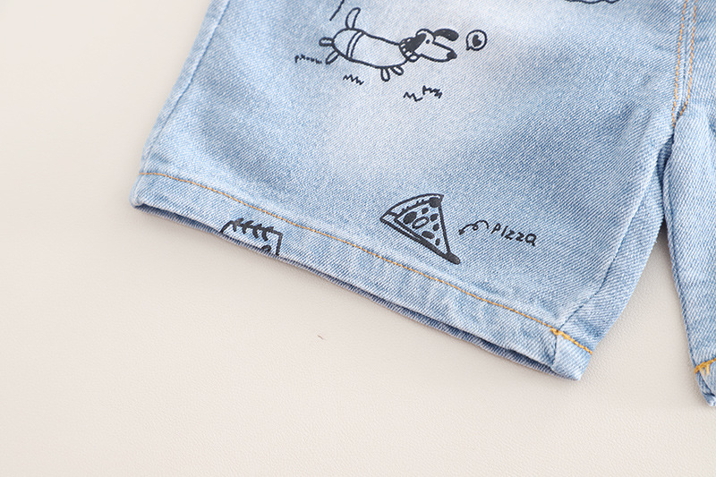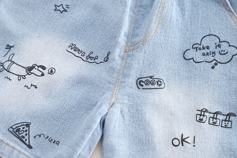 -Pantaloni scurți din denim cu efect ușor decolorat, talie elastică pentru confort maxim și libertate de mișcare. Decorați cu imprimeuri negre stil schiță – pentru un accent urban modern.