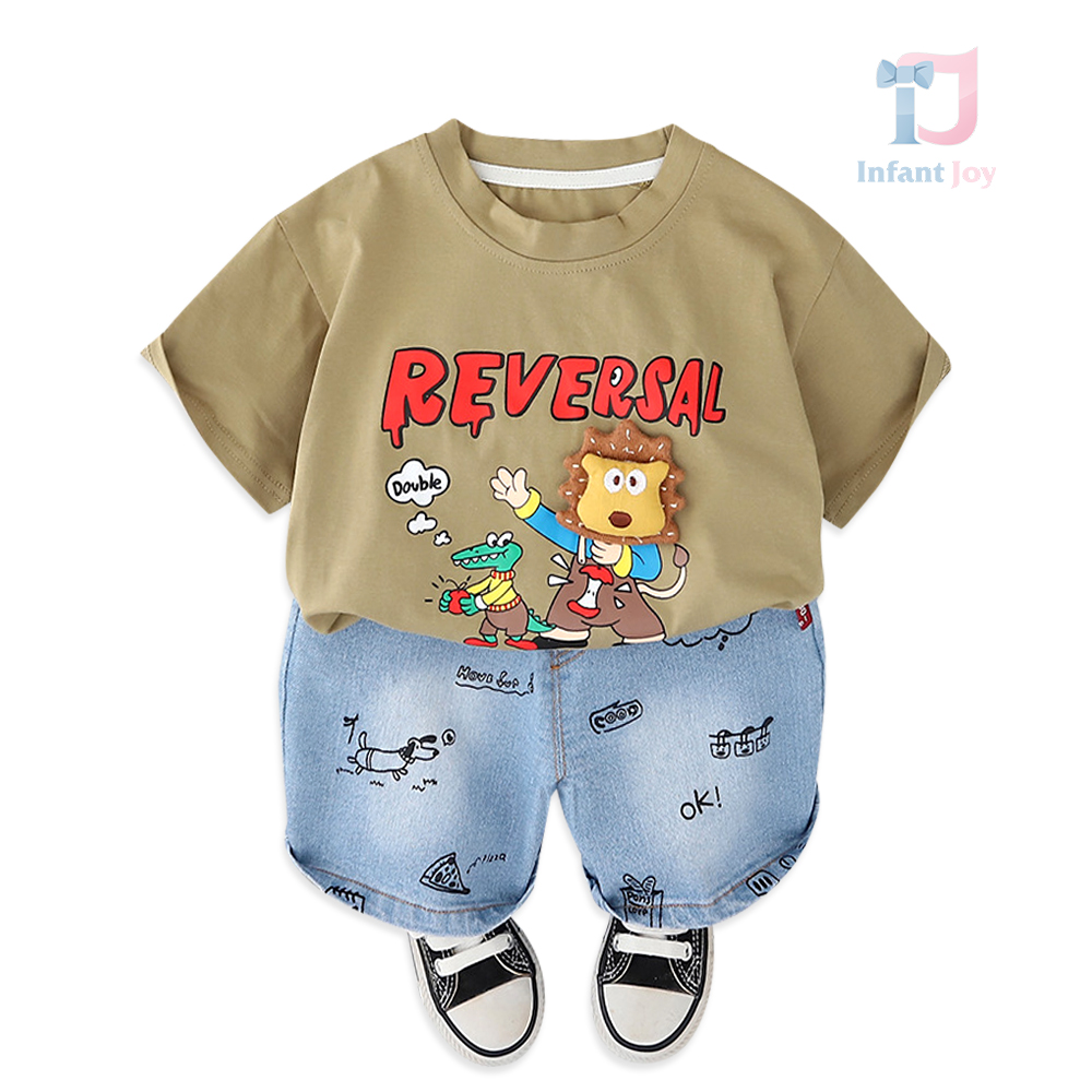 Set de 2 piese din tricou cu imprimeuri, element 3D și pantaloni din denim Lion Reversal
