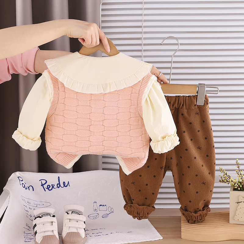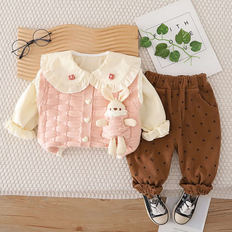 🐰 Compoziție: vestă – 85% acril, 15% poliester; cămașă și pantaloni – 65% poliester, 35% bumbac