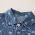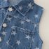 – Vestă din denim fără mâneci, realizată din material denim moale, în nuanță clasică de albastru. Modelul are guler, închidere cu nasturi în față și buzunar pe piept. Modelul integral cu steluțe conferă un aspect distinct și atractiv.