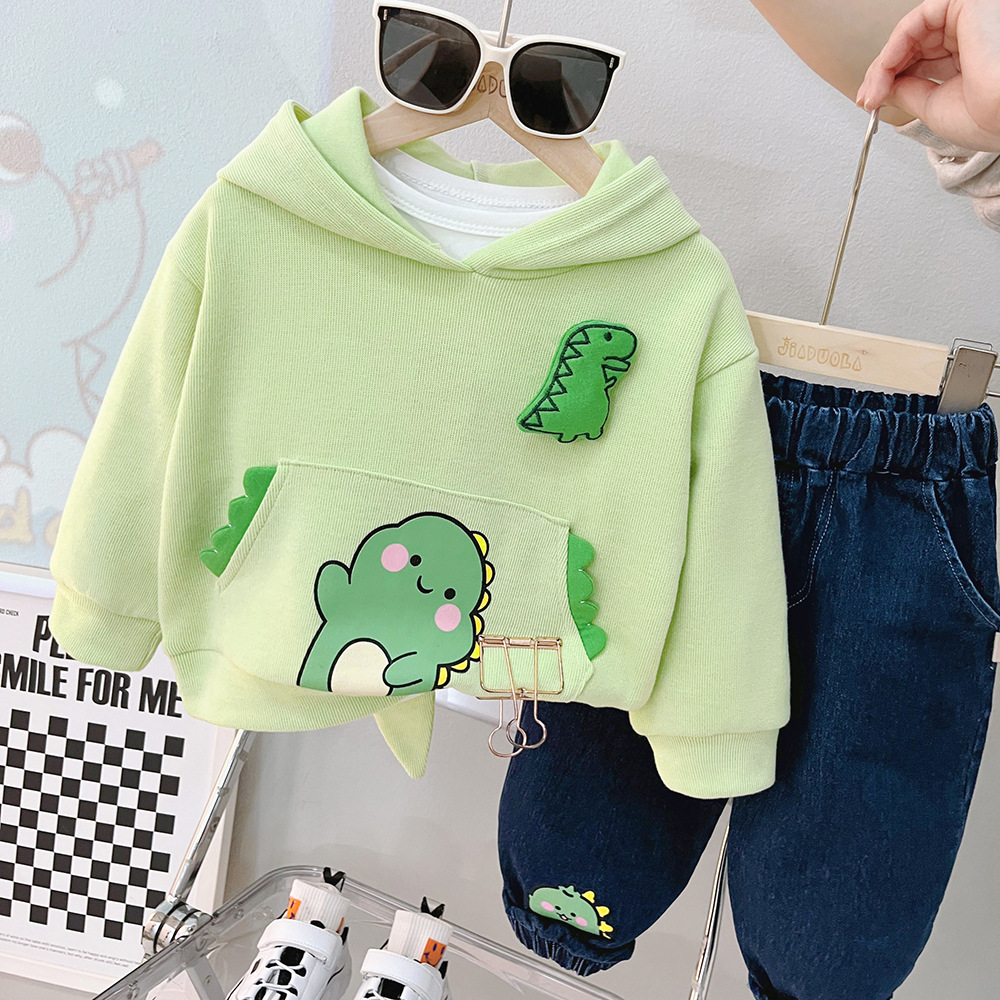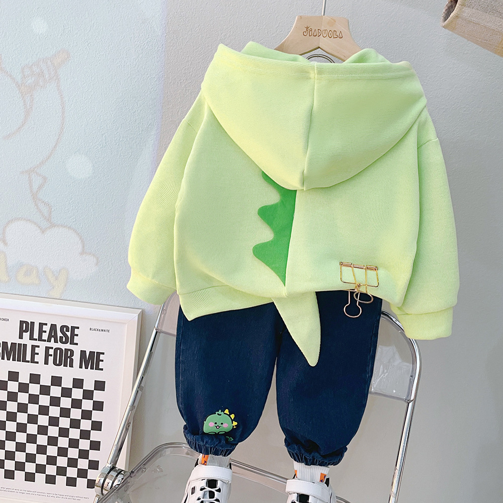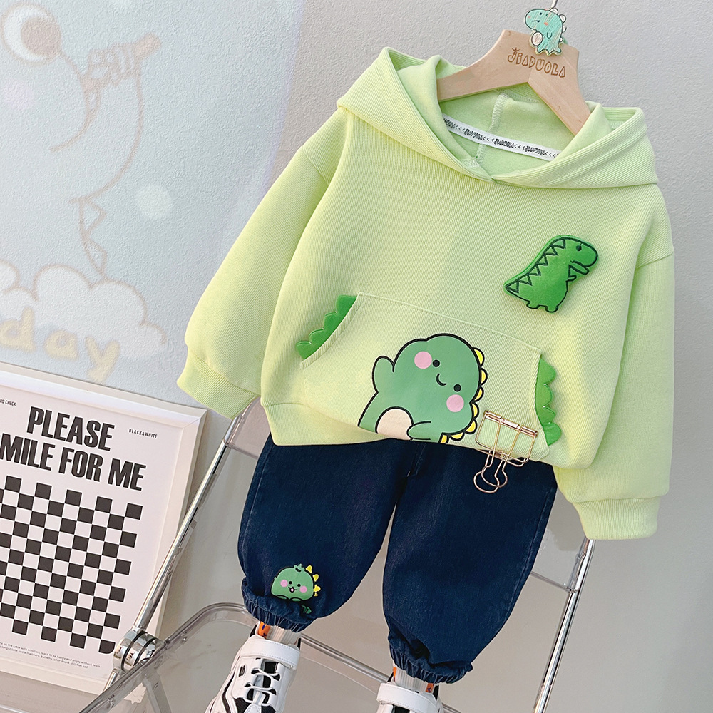 Set de 2 piese cu glugă, buzunar cangur și pantaloni din denim Dino Hey