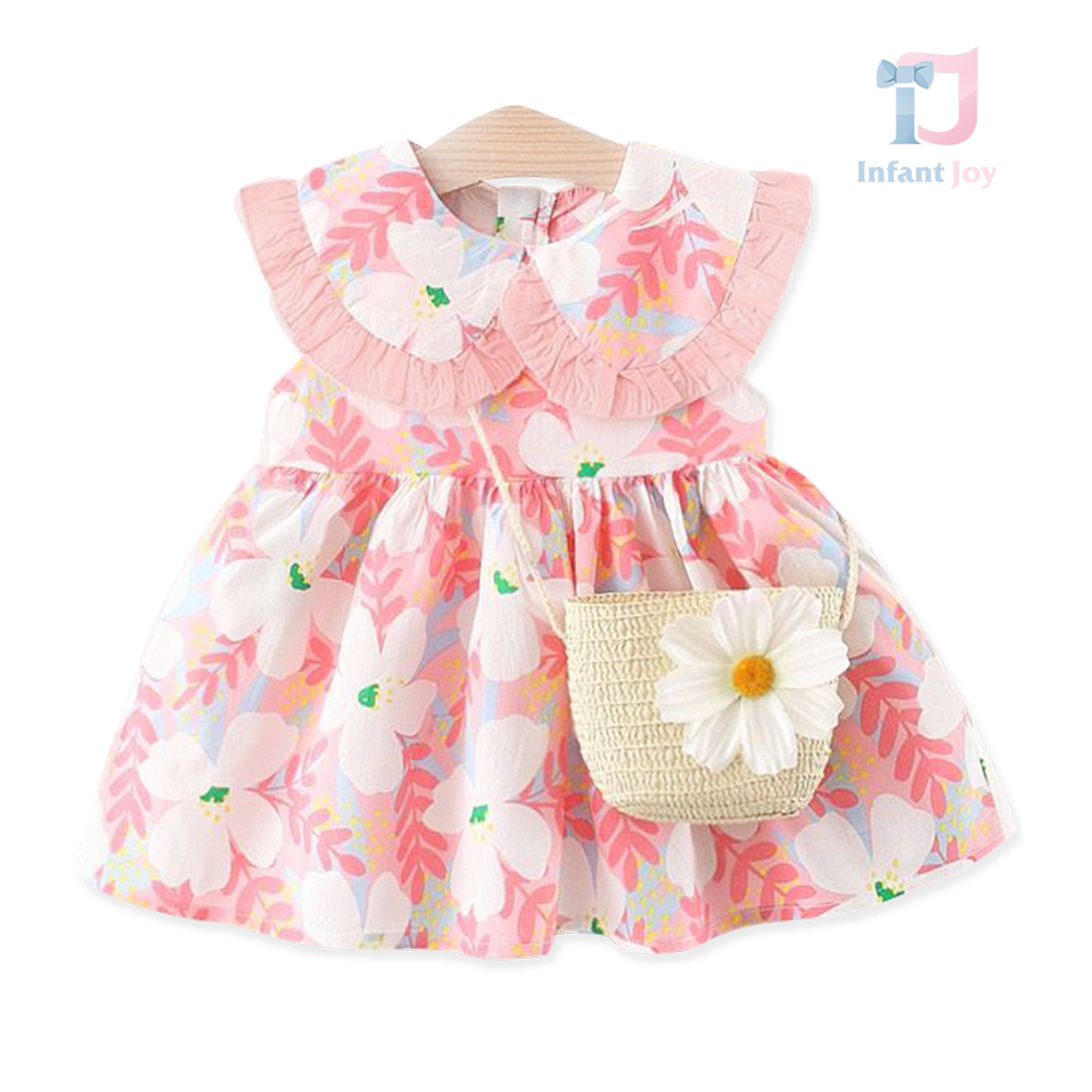 Set de 2 piese format din rochie cu guler Peter Pan, design floral și geantă de umăr Margaret