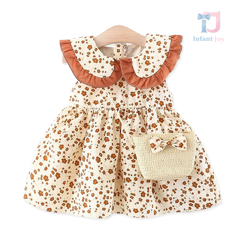 Set de 2 piese format din rochie cu guler tip Peter Pan, design floral și geantă de umăr Super Mini Flowers