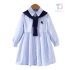 Set de 2 piese format din rochie în dungi cu nasturi și eșarfă Classy Girl Blue