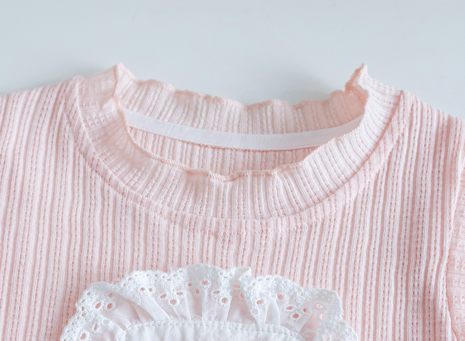 Set de 2 piese format din top din material rib cu aplicație și fustă din dantelă Pink Lace