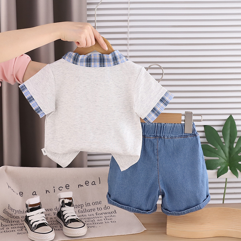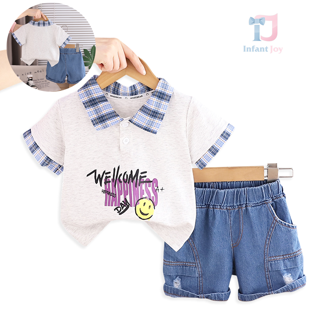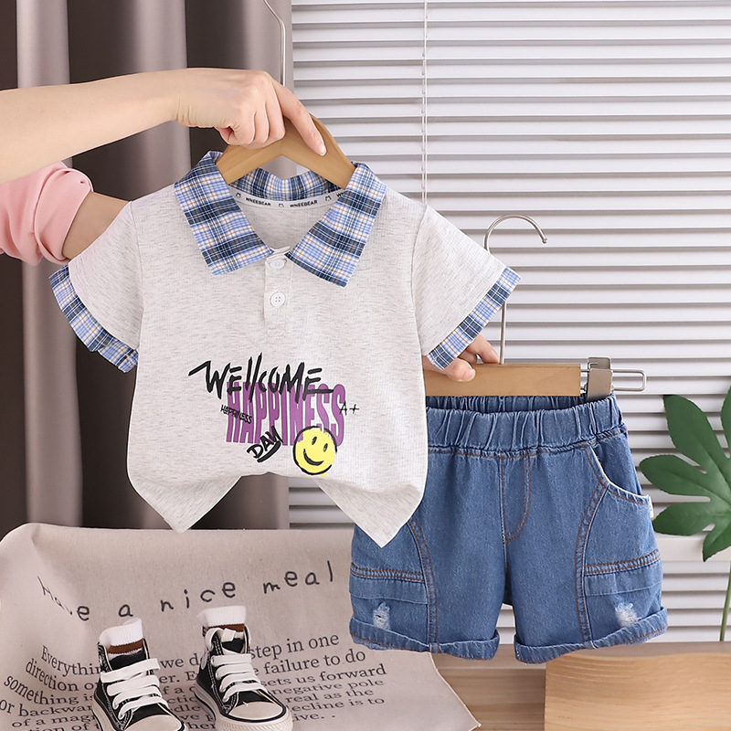 Set de 2 piese format din tricou cu guler clasic și pantaloni scurți din denim Emoji Hapinnes