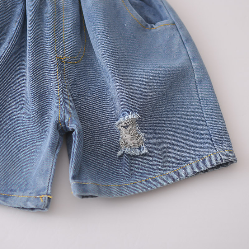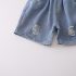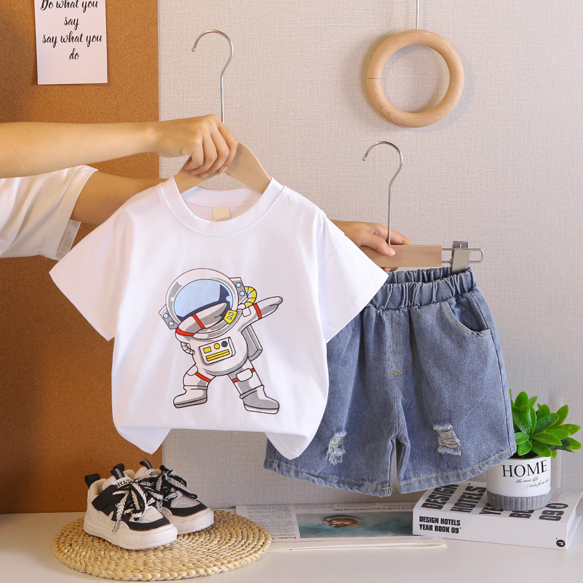 Set de 2 piese format din tricou cu imprimeu și pantaloni scurți din denim cu zone uzate Cosmo Boy
