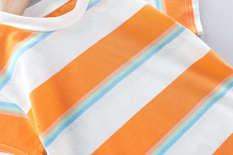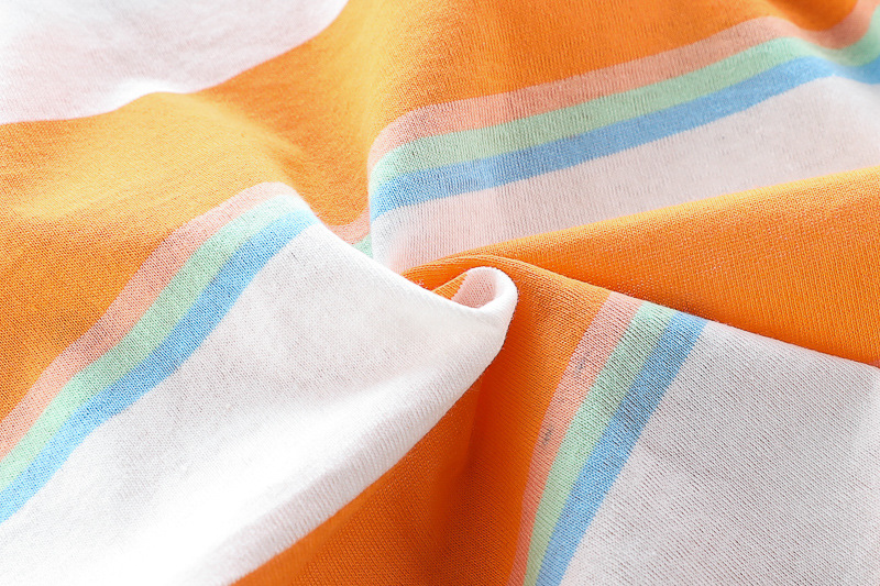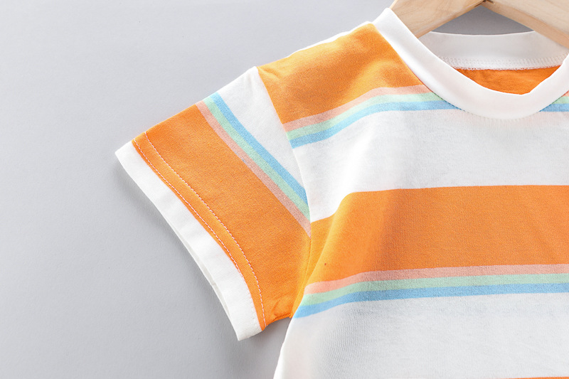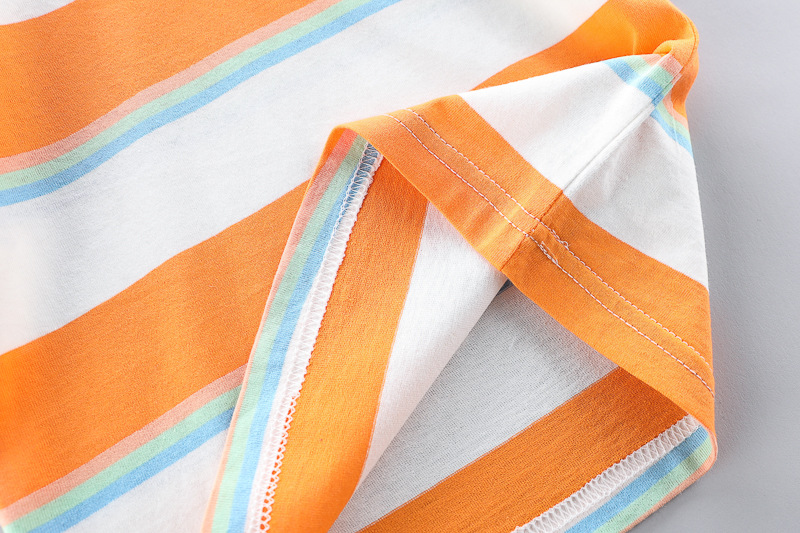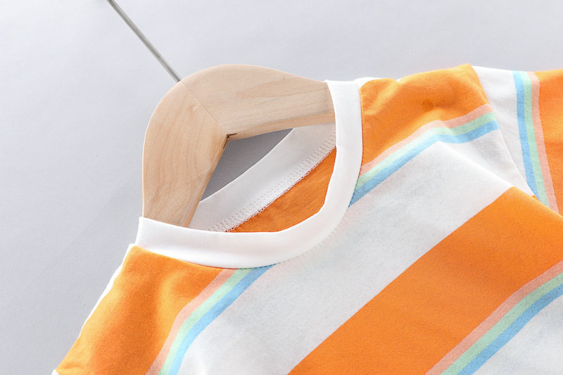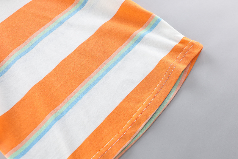 – Tricou cu mânecă scurtă, confecționat din material ușor și respirabil din bumbac. Modelul are dungi proaspete în nuanțe de portocaliu, alb și albastru, care aduc o stare de energie și de vară. Cu decolteu rotund și croială confortabilă pentru libertate de mișcare.