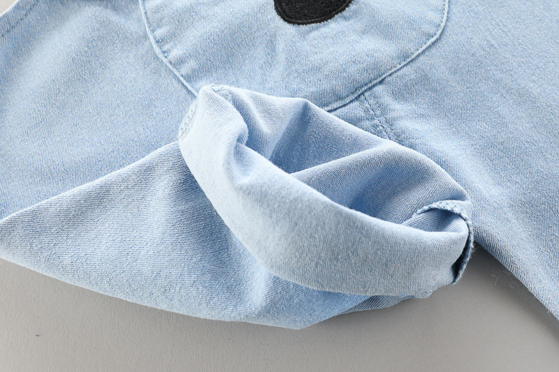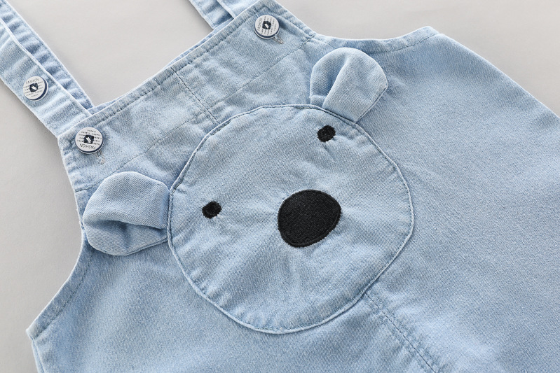 – Salopetă în nuanță bleu deschis, realizată din material de înaltă calitate, ușor. Elementul principal este o aplicație mare cu un ursuleț în față, cu urechiușe 3D, care oferă un aspect extrem de drăguț și inconfundabil. Modelul are bretele reglabile cu nasturi și manșete rulate pentru un stil mai modern.
