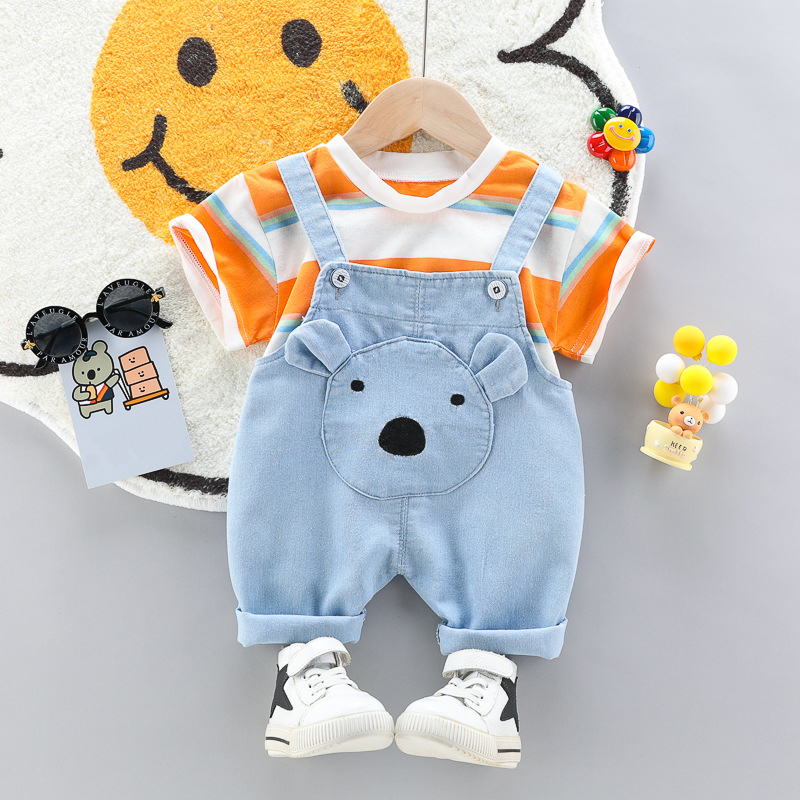 Set de 2 piese format din tricou și salopetă scurtă din denim cu elemente 3D Baby Bear Orange