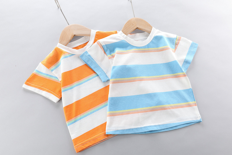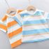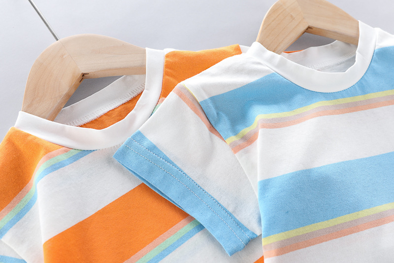 – Tricou cu mânecă scurtă, confecționat dintr-un material ușor și respirabil din bumbac. Modelul are dungi proaspete în albastru, alb și portocaliu, care oferă o stare energică și estivală. Cu decolteu rotund și croială confortabilă pentru libertate de mișcare.