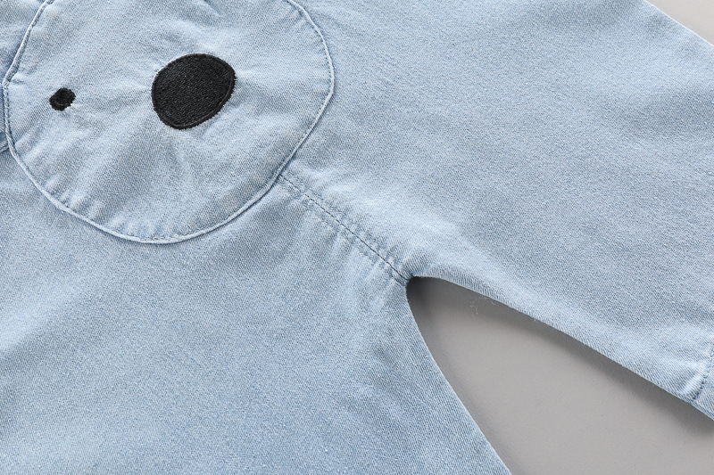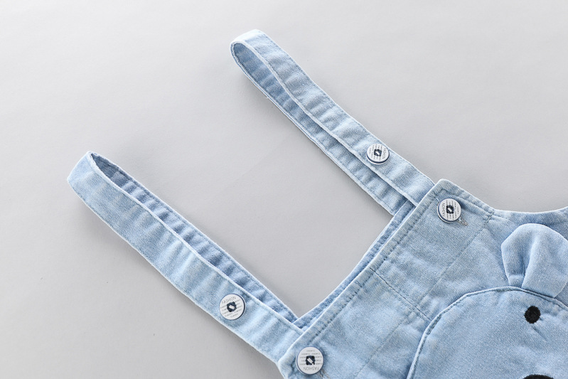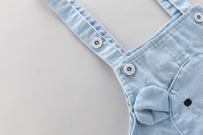 – Salopetă într-o nuanță de albastru deschis, confecționată dintr-un material de înaltă calitate, ușor. Accentul este aplicația mare cu ursuleț în față, cu urechiușe 3D, care oferă un aspect extrem de drăguț și ușor de recunoscut. Modelul are bretele reglabile cu nasturi și manșete rulate pentru un stil și mai modern.