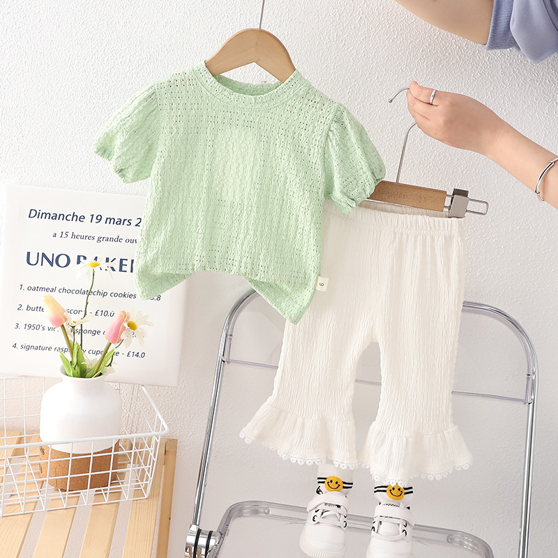 Set de 2 piese din crep cu spate spectaculos și mânecă bufantă Green Fiesta