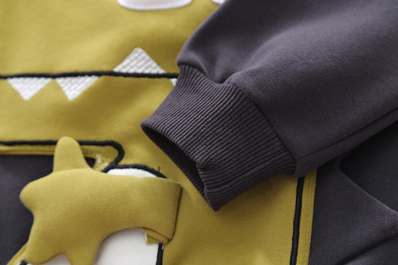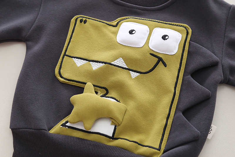 -Bluză din bumbac de înaltă calitate, de culoare negru. Model cu manșete elastice la talie și mâneci + accent în partea din față cu broderii și un efect 3D reprezentând un mic dinozaur.
