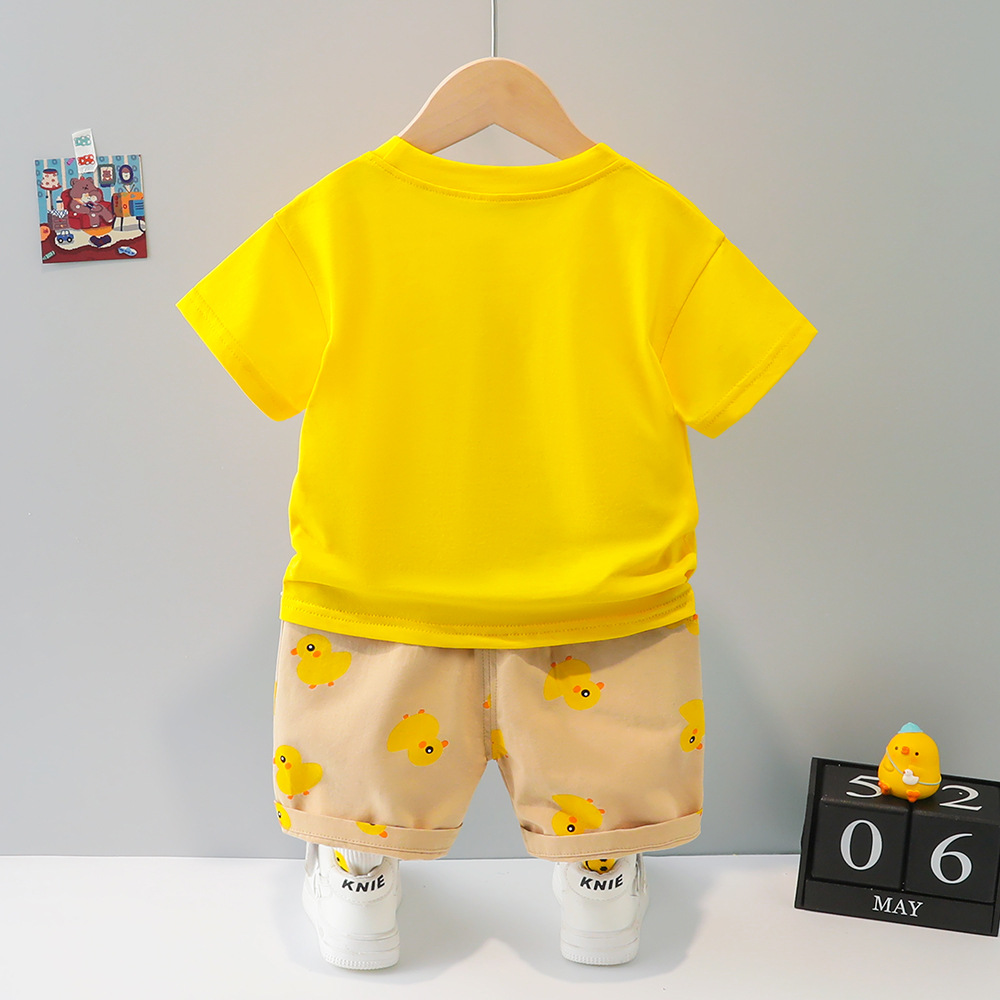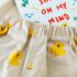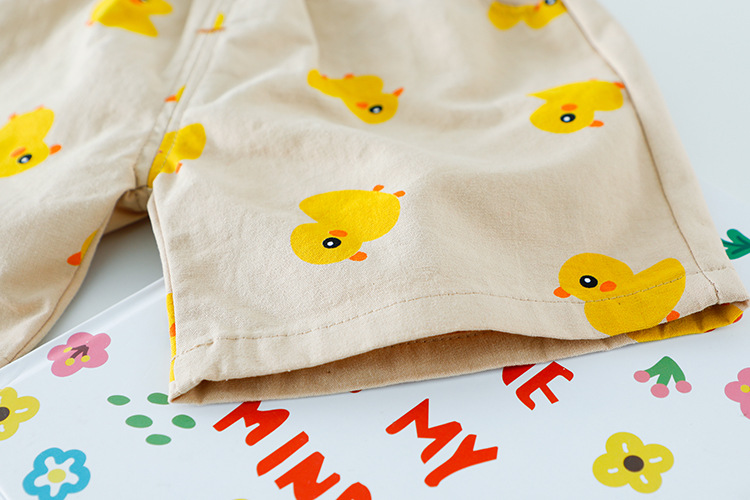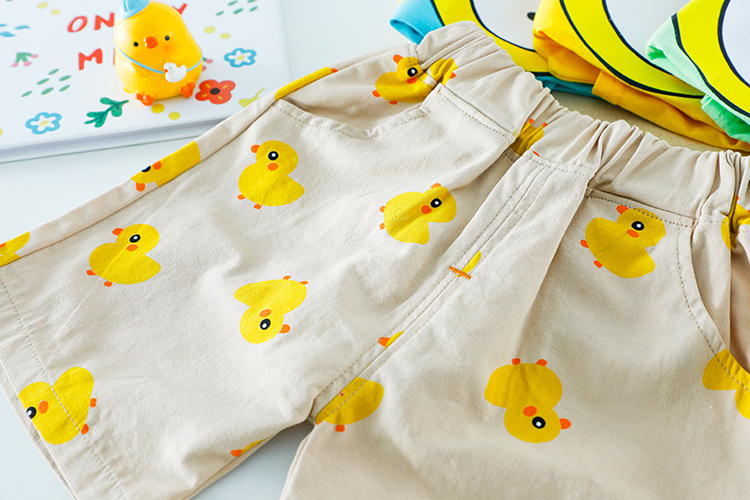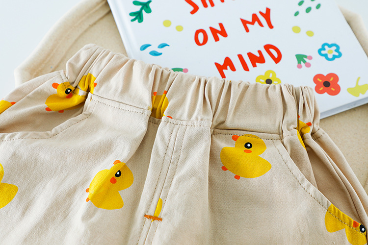 -Pantaloni scurți imprimați, asortați cu tricoul, din material moale, în bej.