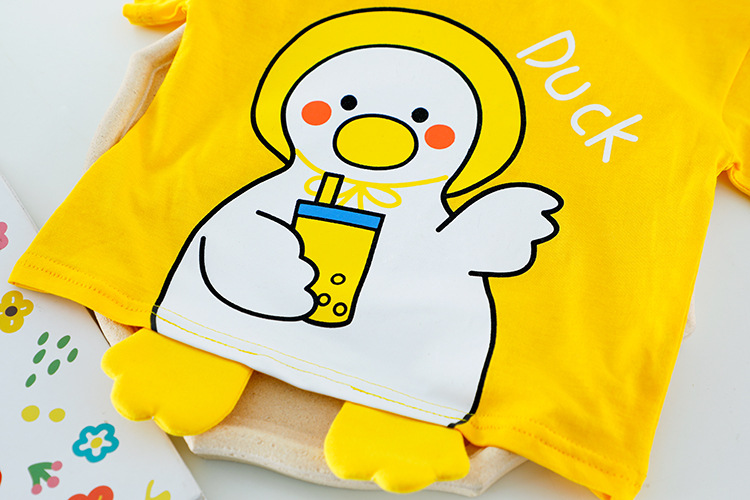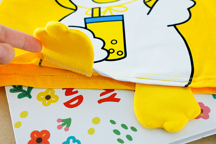 Model cu croială clasică și imprimeu frontal cu un rățoi mare, + element 3D la picioare pentru un look drăgălaș.