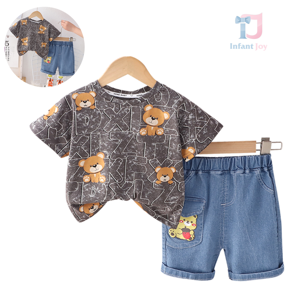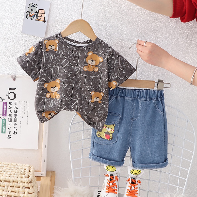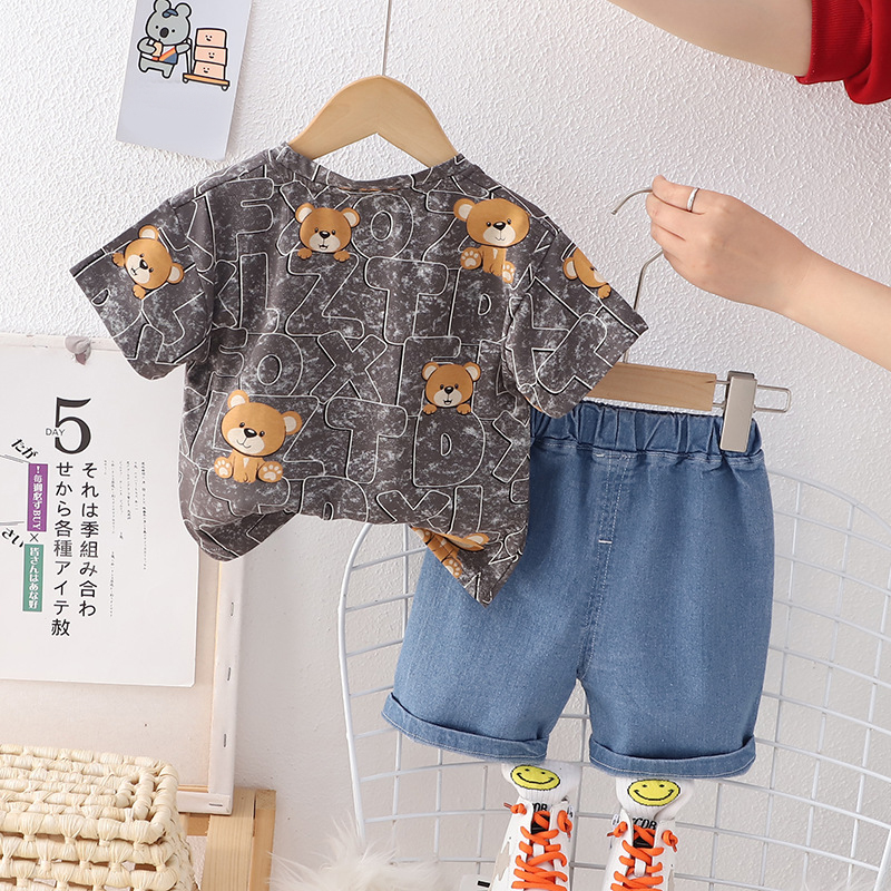 Set de 2 piese cu pantaloni scurți din denim Letter Bear