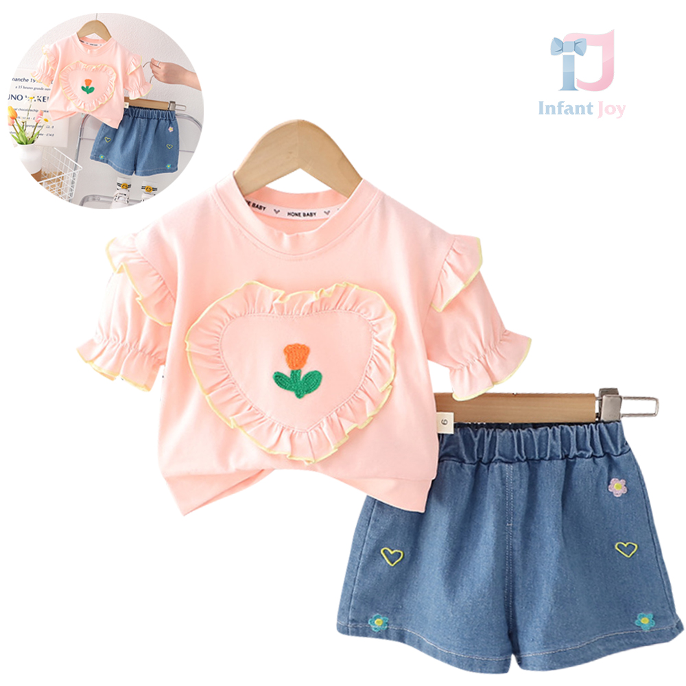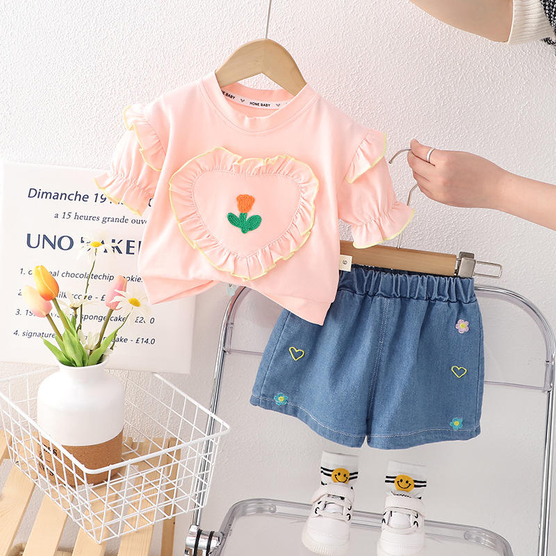 Set de 2 piese cu bucle și broderie Love My Mini Flower