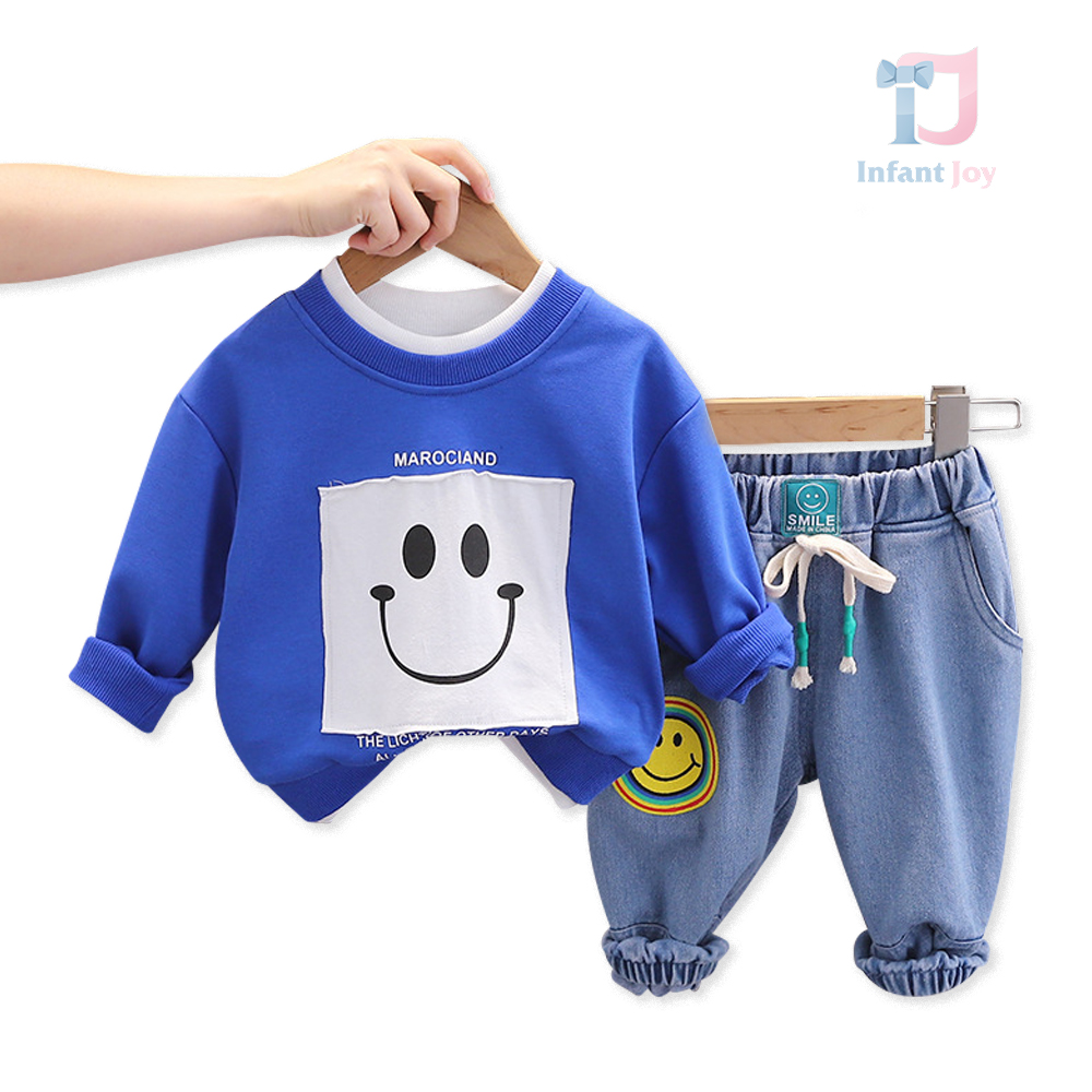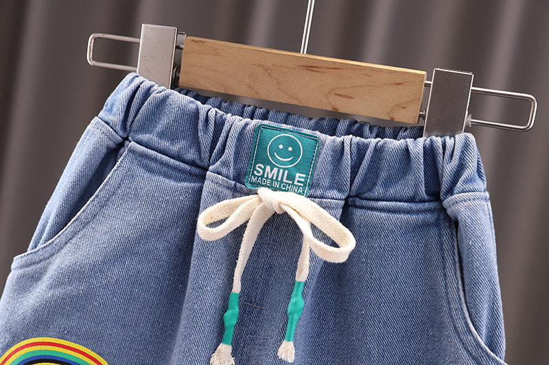 Set de 2 piese cu broderie, petice și pantaloni din denim Marocian Smile