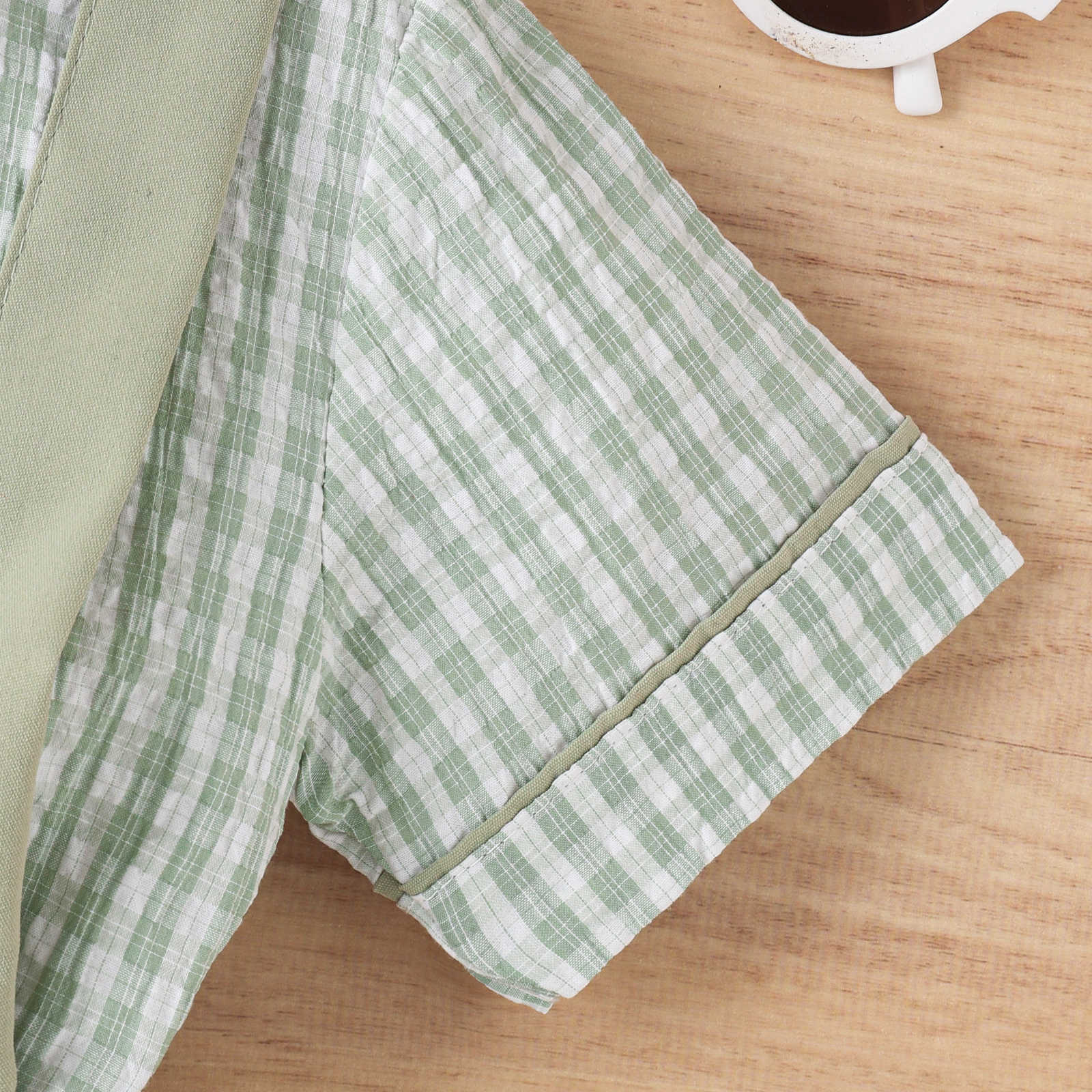 😎Caracteristici: țesătură de înaltă calitate, crep, design elegant, carouri, panglică, buzunare, elastice, curele de umăr reglabile