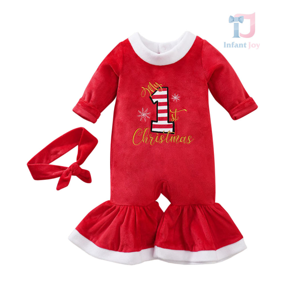 Set de Crăciun 2 piese cu salopete din pluș cu picioare extravagante și bentiță My First Christmas