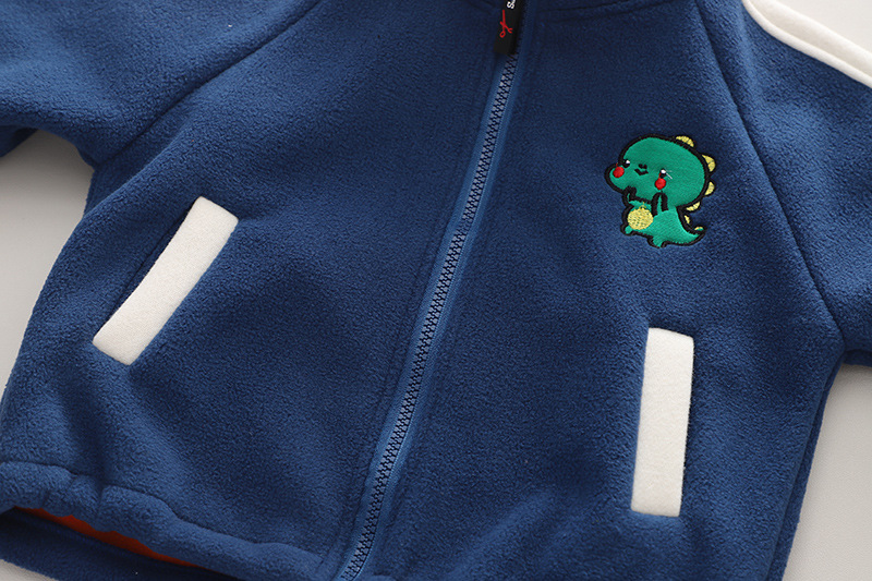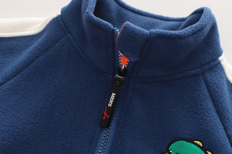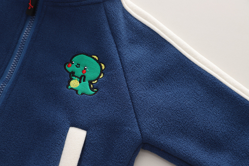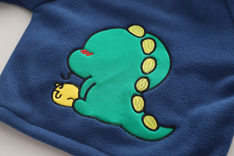 Set fleece de 2 piese cu broderie si guler inalt Navy Dino