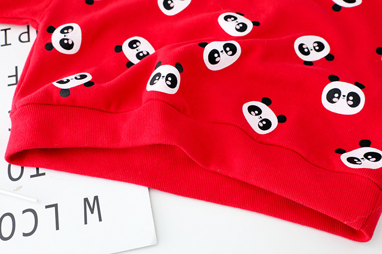 – Bluză din tricot fin de calitate superioară, într-o nuanță intensă de roșu, cu model simpatic de ursuleți panda. Croială clasică, cu manșete evidențiate în talie și la mânecите pentru un plus de confort.
