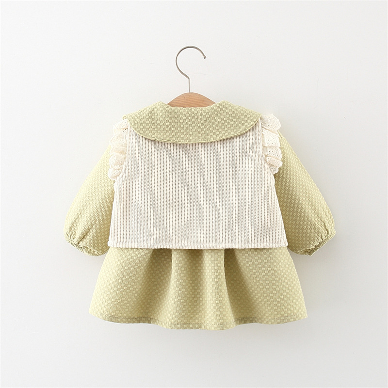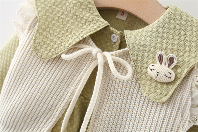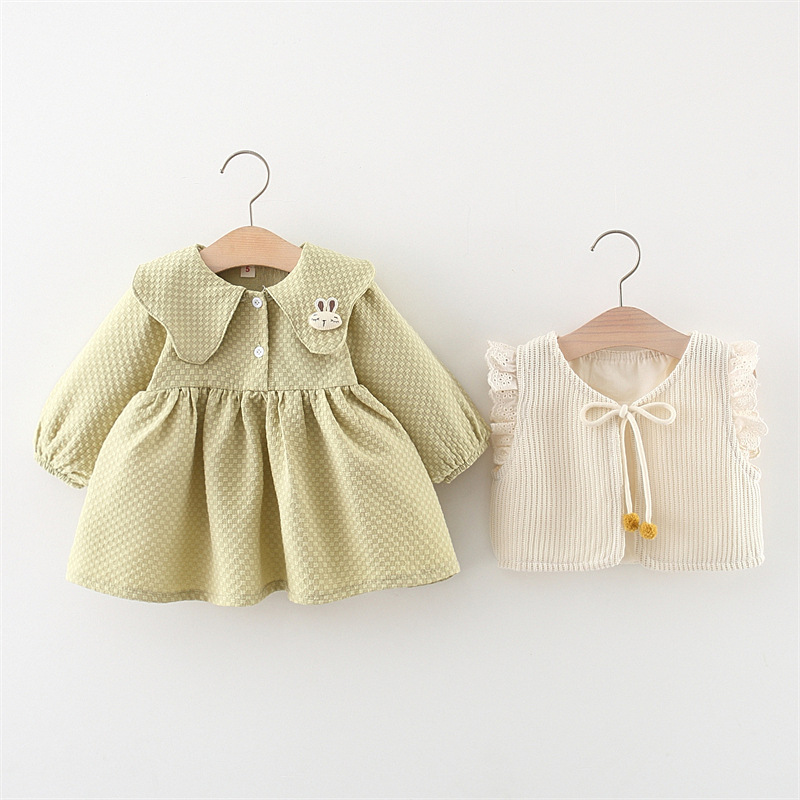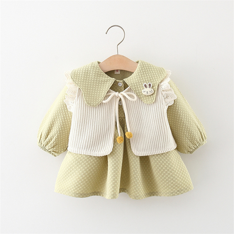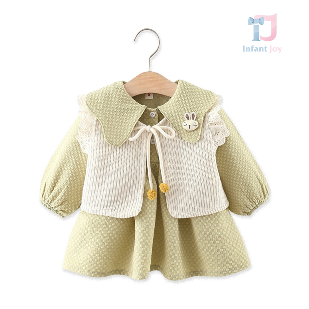 Set de 2 piese, rochie cu vesta si brosa Bunny Mint