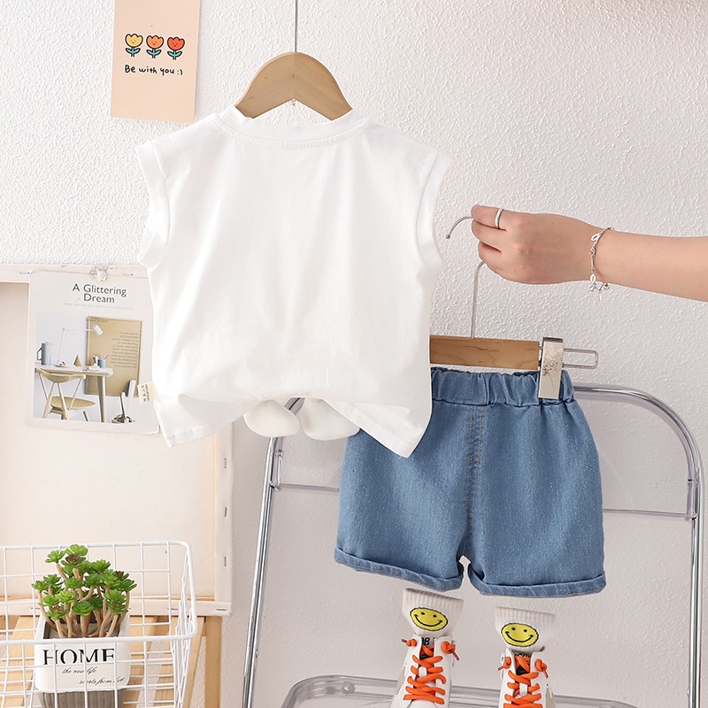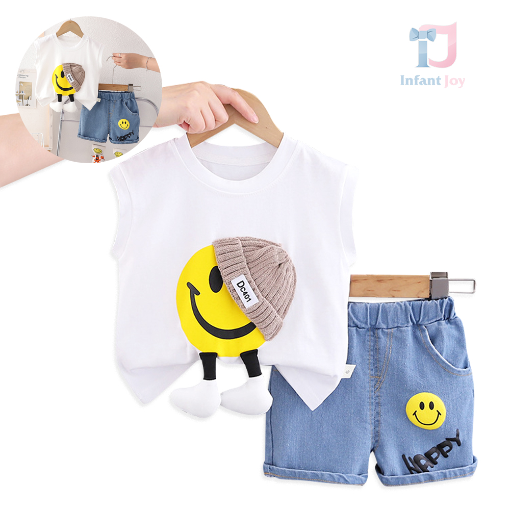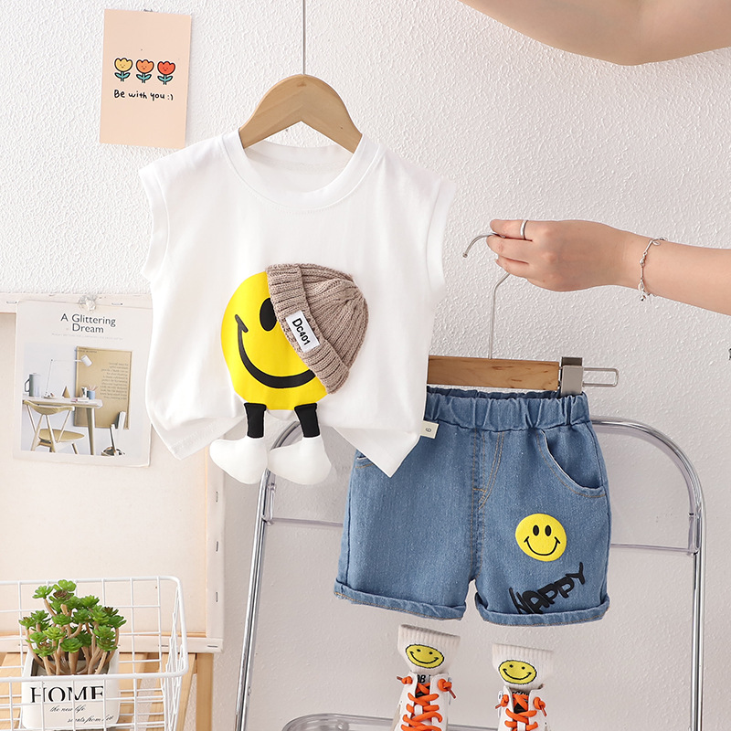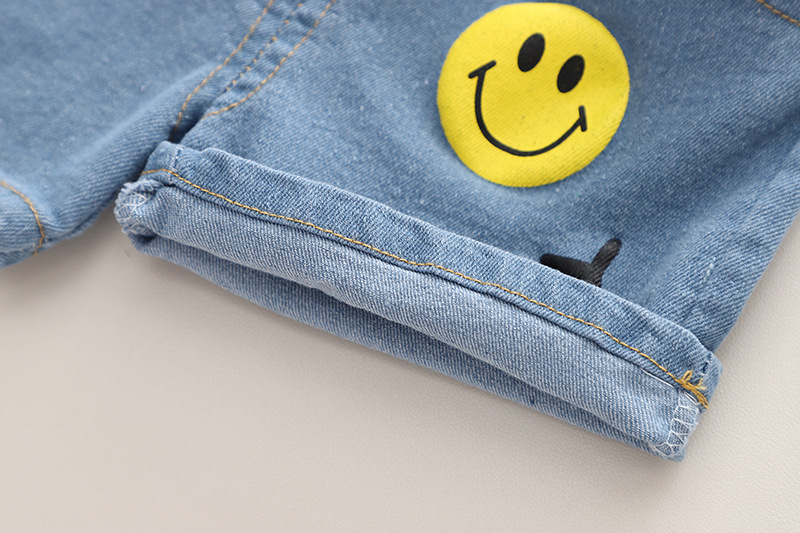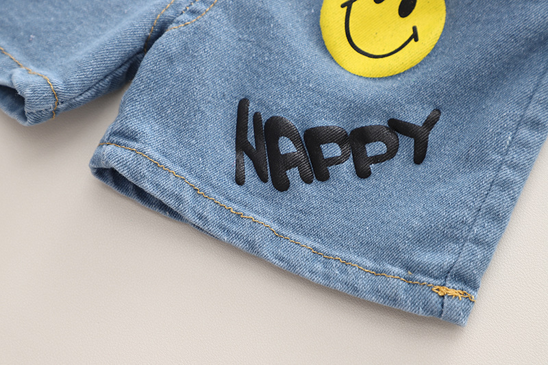 Set de 2 piese cu pantaloni scurți din denim și elemente 3D Smiley White