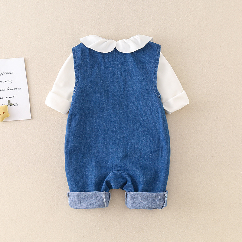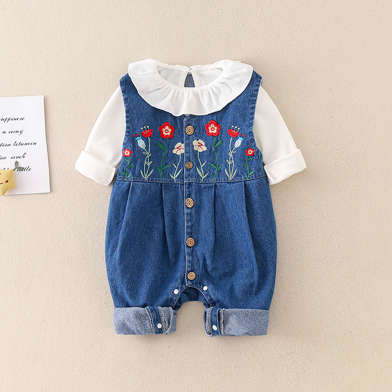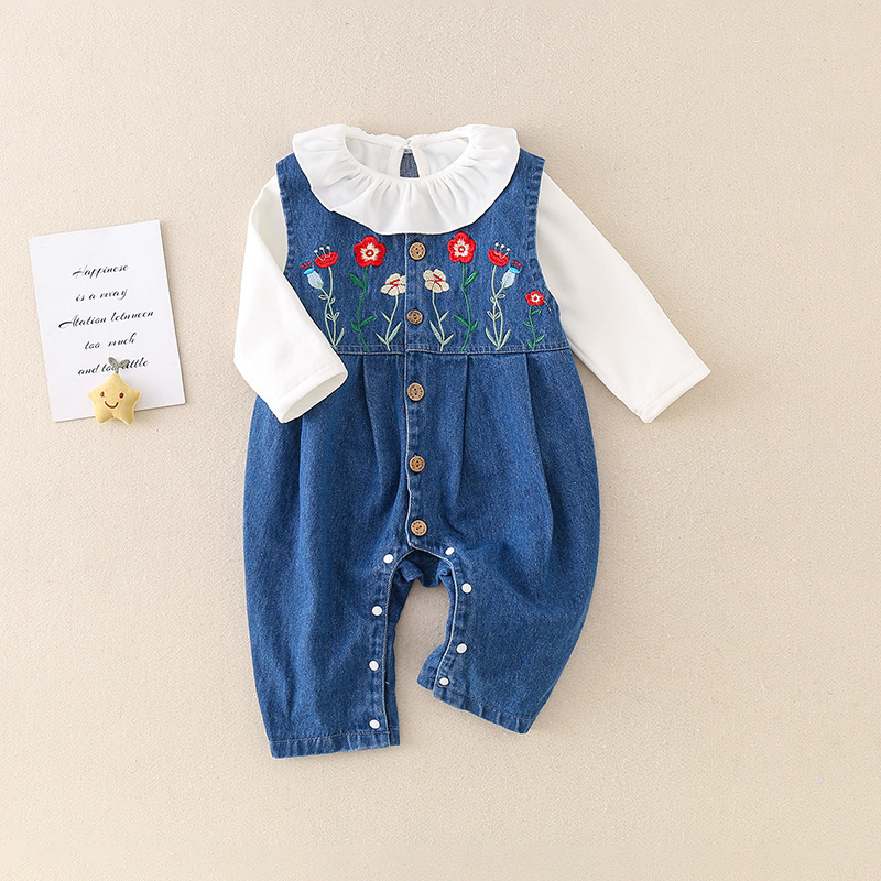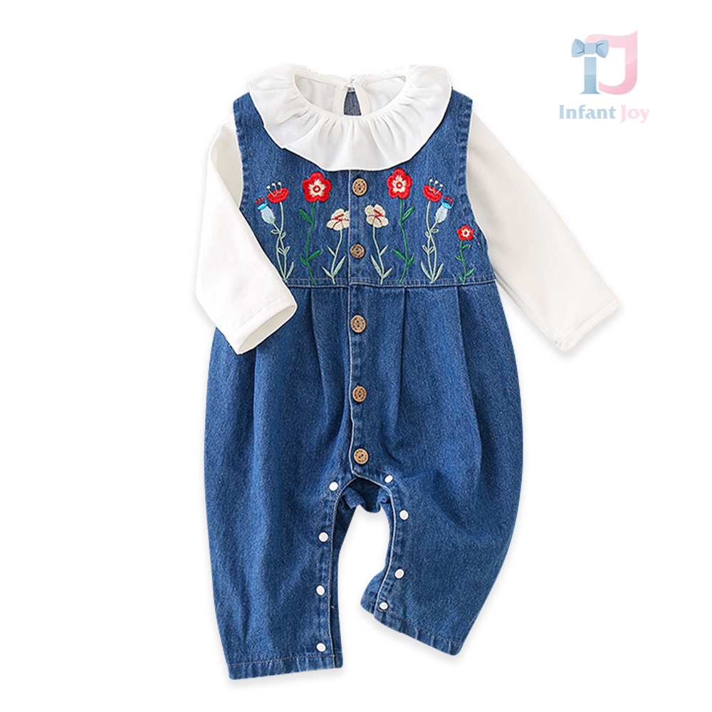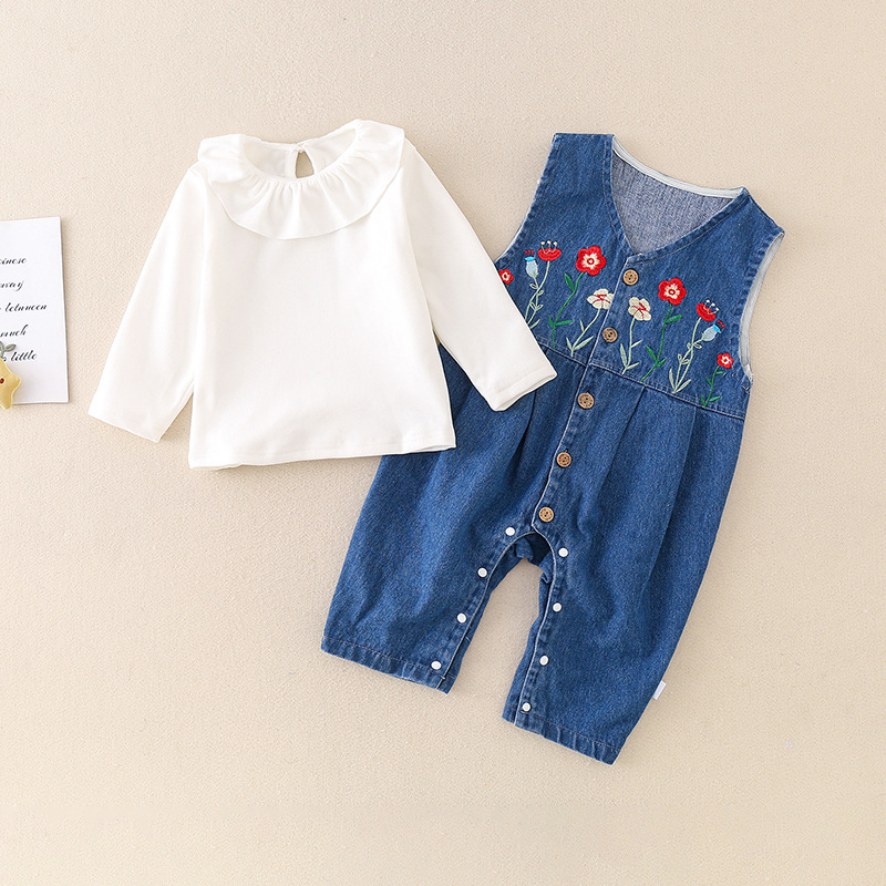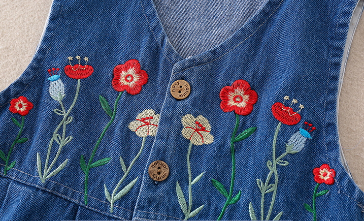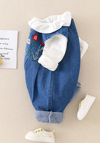 Set de 2 piese cu salopetă din denim și broderie Spring Flowers