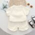 -Pantaloni scurți asortați cu tricoul, cu talie elastică pentru confort, două buzunare frontale + elemente 3D verticale aplicate pe ambele picioраșe.