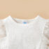 -Maiou alb din material rib de înaltă calitate, cu elastic adăugat în talie pentru confort + accent – volănașe laterale spectaculoase din tul cu buline pentru un look deosebit.