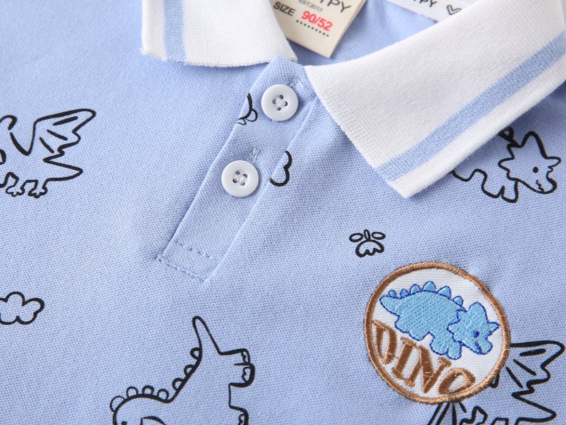 🦕 Model cu guler clasic alb și închidere cu două nasturi – pentru îmbrăcare ușoară și rapidă.