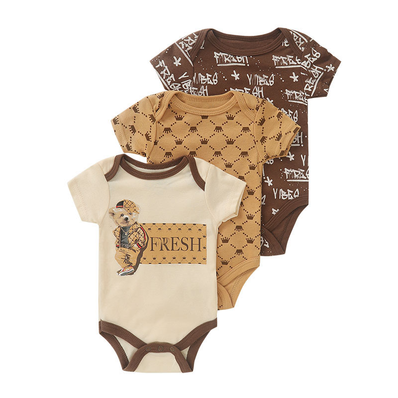 🤎 Set modern din 3 body-uri pentru bebeluși, în tonuri calde de maro – stilat, confortabil și cu un accent modern street. O combinație perfectă de practicitate și look trendy pentru fiecare zi