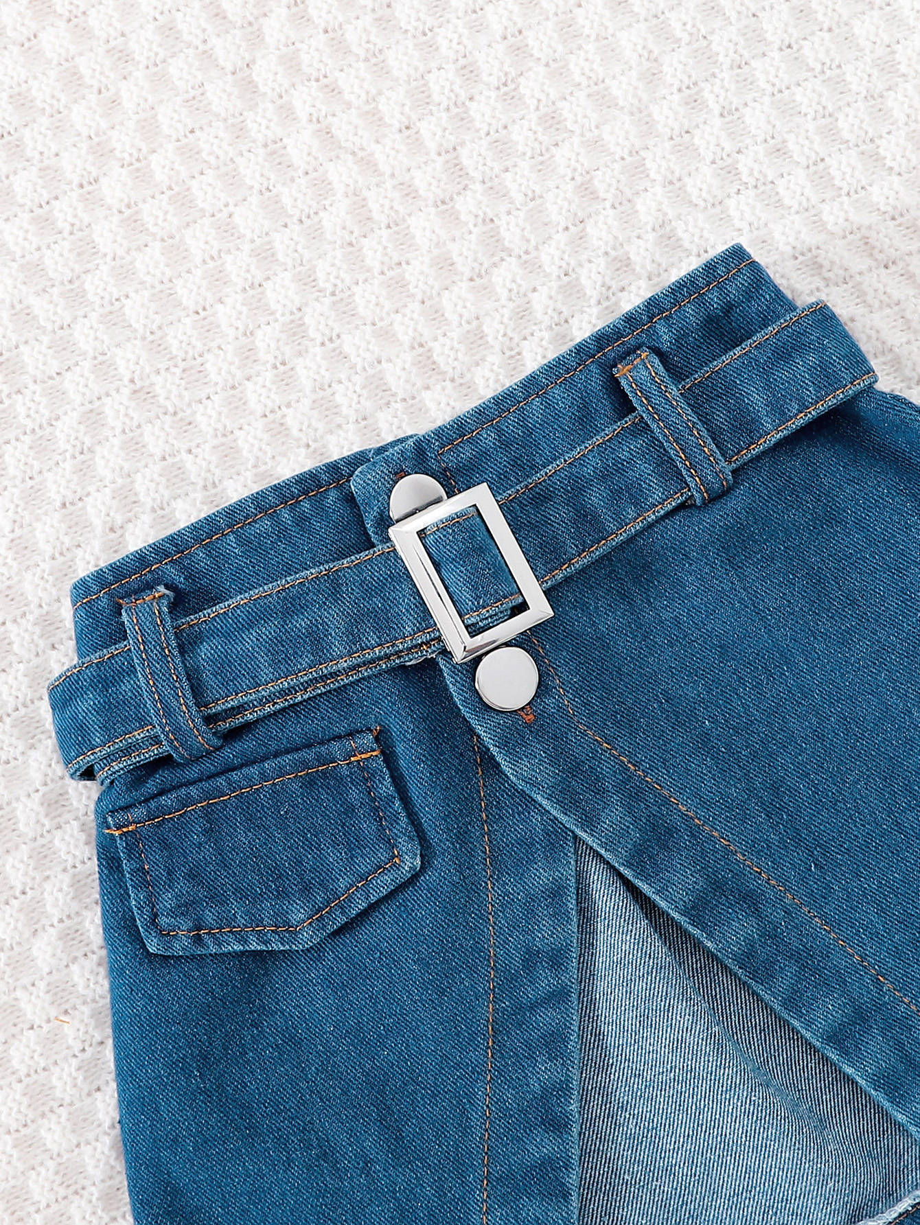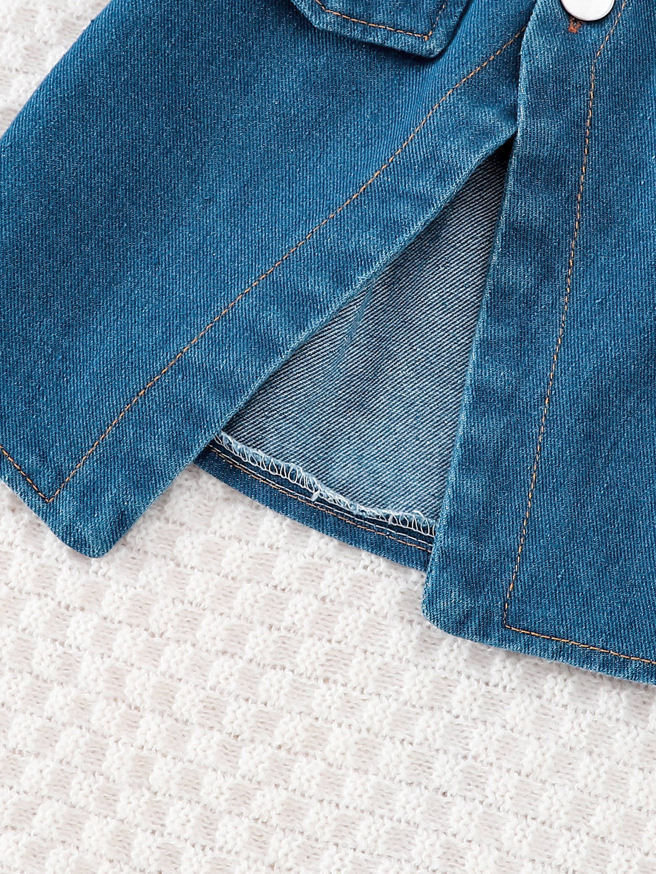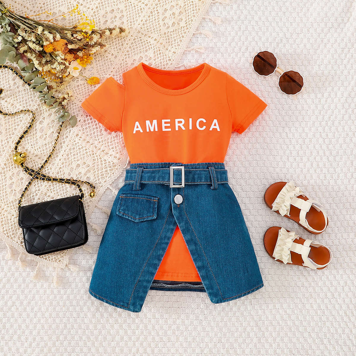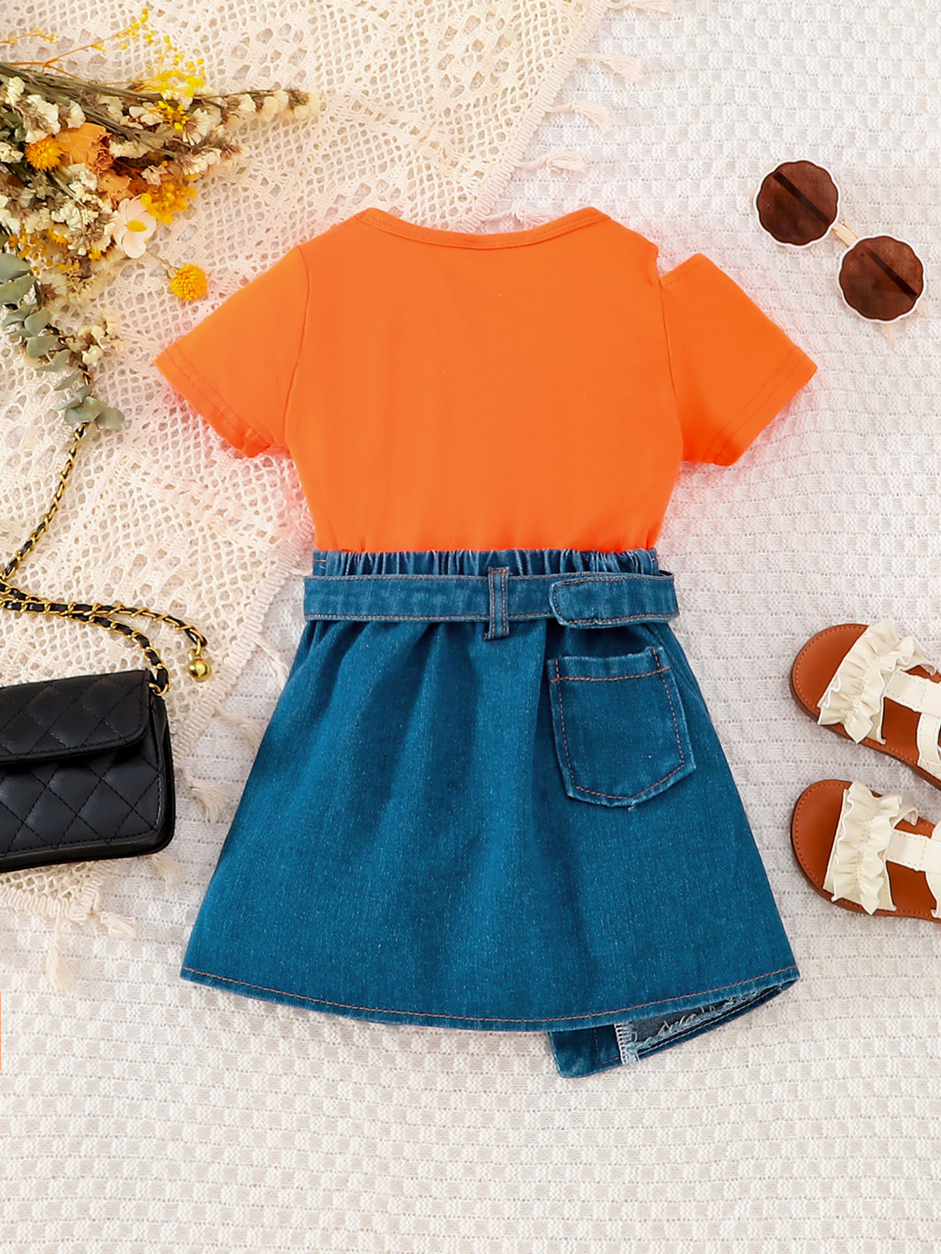 Set de 3 piese cu rochie cu fusta si curea asimetrice, din denim America