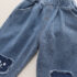 -Pantaloni din denim moale, cu talie elastică pentru confort, două buzunare și aplicații moderne pe ambele picioare.