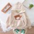 -Hanorac vătuit din bumbac de înaltă calitate, de culoare bej. Modelul are glugă și manșete elastice la talie și mâneci pentru confort maxim. Buzunar frontal tip “cangur” și o frumoasă aplicație brodată cu ursuleț pe partea frontală ca accent al modelului.
