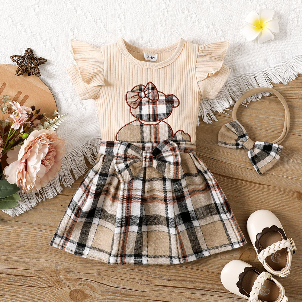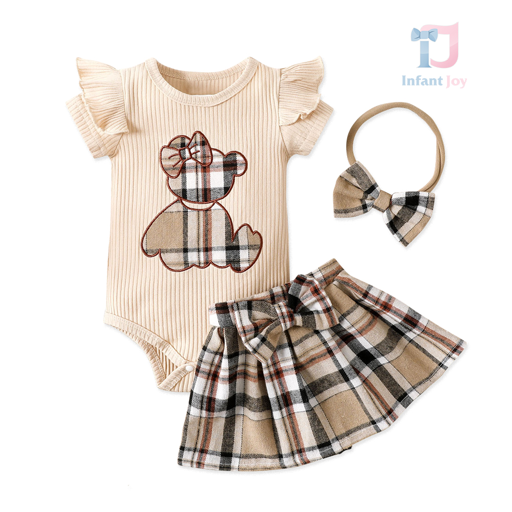 Set de 3 piese cu bucle și fustă din lână ecologică Beige Bimbo Girl