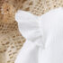 -Bluză albă cu mânecă lungă, din material tip rib moale, cu efect tricotat. Model cu guler tip helancă și volănașe atractive aplicate pe umeri, pentru un aspect modern.